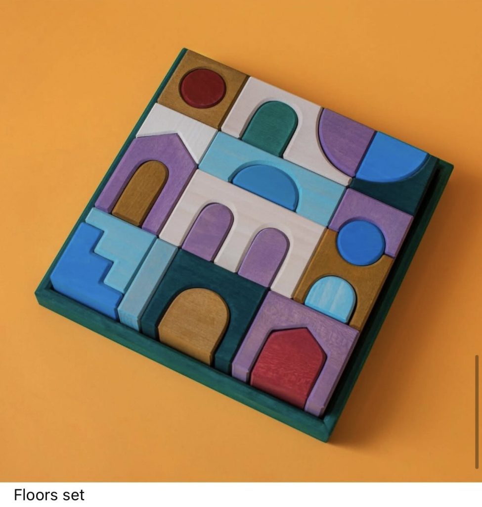 Grimms Floors is een bouwset die meteen aan architectuur doet denken. Met poorten, deuren en trappen bouw je niet alleen omhoog, maar vooral in lagen. De set nodigt uit om te spelen met verschillende niveaus, doorgangen en routes. Wat gebeurt er boven? En wat speelt zich beneden af?
