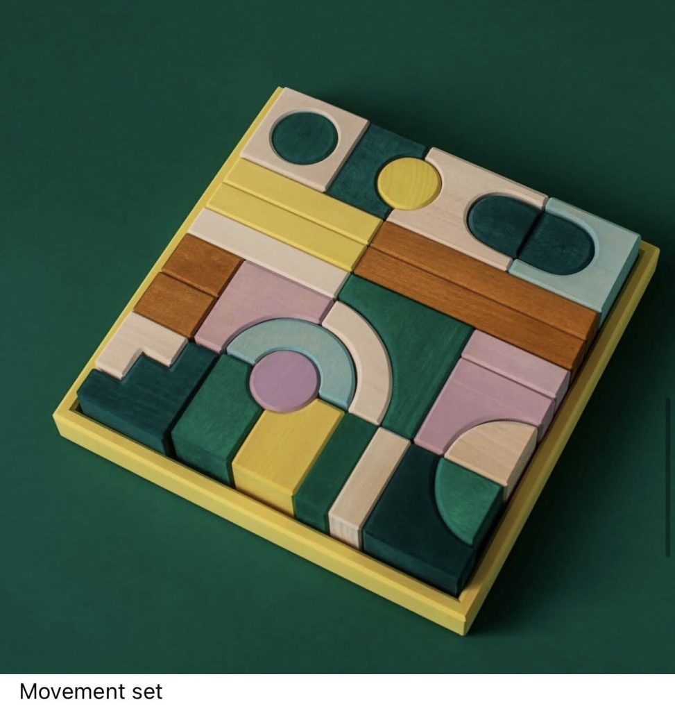 De prachtige blokkenset Movement laat zien hoe sterke kleurcontrasten en uiteenlopende vormen samenkomen. Je maakt fantasierijke constructies, maar net zo makkelijk een artistieke sculptuur die blijft veranderen zolang je ermee bezig bent. Een set voor nieuwsgierige bouwers die graag buiten de lijntjes denken. De Grimms Movement set kost €84,90.