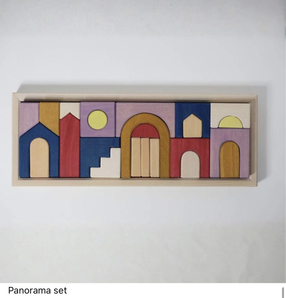 Deze set nodigt uit tot groots denken. Met Panorama maak je verhalende constructies, maar net zo goed abstracte bouwwerken of sculpturen die blijven verrassen. De Grimms Panorama set kost €94,95.