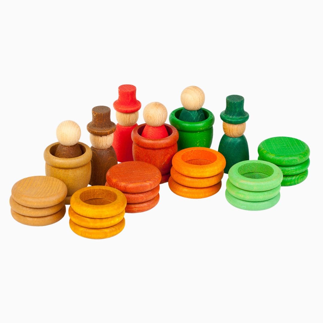 Ben je op zoek naar Grapat herfst speelset-27-delig? Het mooie, duurzame merk Grapat staat bekend om hun houten open einde-speelgoed. En daar hebben ze nogal wat toffe soorten van! Deze herfstachtige seizoensset is onze favoriet. De set bestaat uit poppetjes, houten bakjes, ringen en muntjes die qua kleur bij de herfst passen. Superleuk om een seizoentafel mee te maken of om talloze andere spelletjes mee te spelen, zoals tellen, sorteren, stapelen en rekenen. Je kunt ze ook heel goed combineren met ander speelgoed dat je hebt liggen. En voor ouders die graag antroposofisch speelgoed aanbieden, is dit dan ook een perfect cadeau. Productspecificaties Grapat herfst speelset * Merk: Grapat* Materiaal: Hout, gekleurd met natuurlijke verf op waterbasis * Inhoud verpakking: 3 houten Nins poppetjes mét hoed en 3 zonder hoed, 3 houten bakjes, 9 ringen en 9 muntjes * Afmetingen poppetje: 6 cm hoog * Leeftijd: 12+ maanden