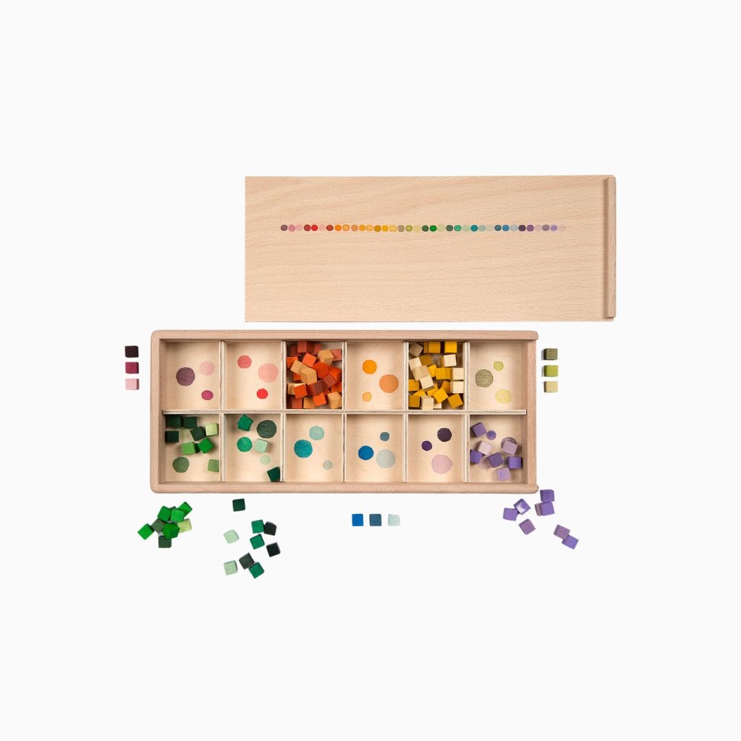Ben je op zoek naar Grapat Mis&Match sorteerbak met blokjes-430-delig? De Grapat’Mis and Match’is een super leuke speelset met sorteerdoos en ruim 400 blokjes in 36 verschillende kleuren. Dit open einde speelgoed is super leuk om mee te mozaïeken, te stapelen, figuren te leggen of te gebruiken als loose parts in de speelkeuken. De blokjes zijn super goed voor het oefenen van de fijne motoriek en verfijnen van de pincetgreep. Productspecificaties Grapat houten sorteerbak met blokjes * Merk: Grapat * Materiaal: Beukenhout * Inhoud verpakking: sorteerbak met 430 blokjes in vrolijke kleuren * Afmetingen: 35,5 x 26,5 x 4 cm * Leeftijd: 36+ maanden