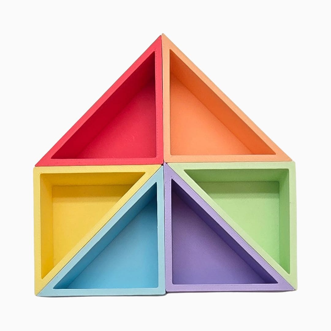 Ben je op zoek naar Grennn speelbakjes set pastel-rechthoekige driehoeken? Deze speelbakjes set is een leuke uitbreiding op het magic sand of speelrijst van Grennn. De set bestaat uit zes vierkanten in mooie pasteltinten. De verschillende kleuren nodigen uit om materialen, zoals loose parts te sorteren, te rangschikken en patronen te leggen. Ook kunnen kinderen de speelbakjes vullen met kinetisch zand om heerlijke taartjes te bakken. Kortom! Fantastisch open einde speelgoed dat fantasierijk spel stimuleert! Specificaties speelbakjesset rechthoekige driehoeken * Merk: Grennn * Leeftijd: 3+ jaar * Materiaal: plantaardig, biologisch afbreekbaar plastic * Afmeting: 5 (l) x 5 (l) x 2,4 (h) cm * Inhoud verpakking: 6 rechthoekige driehoekvormige speelbakjes * Schoonmaken: afspoelen met lauwwarm water