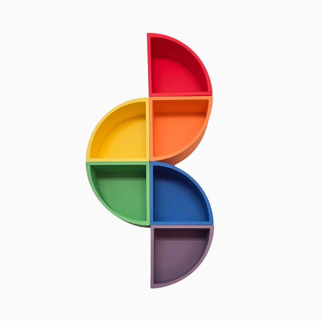 Ben je op zoek naar Grennn speelbakjes set regenboog-kwartcirkels? Deze speelbakjes set is een leuke uitbreiding op het magic sand of speelrijst van Grennn. De set bestaat uit zes vierkanten in vrolijke regenboogkleuren. De verschillende kleuren nodigen uit om materialen, zoals loose parts te sorteren, te rangschikken en patronen te leggen. Ook kunnen kinderen de speelbakjes vullen met kinetisch zand om heerlijke taartjes te bakken. Kortom! Fantastisch open einde speelgoed dat fantasierijk spel stimuleert! Specificaties speelbakjesset kwartcirkels * Merk: Grennn * Leeftijd: 3+ jaar * Materiaal: plantaardig, biologisch afbreekbaar plastic * Afmeting: 5 (l) x 5 (l) x 2,4 (h) cm * Inhoud verpakking: 6 kwartcirkelvormige speelbakjes * Schoonmaken: afspoelen met lauwwarm water