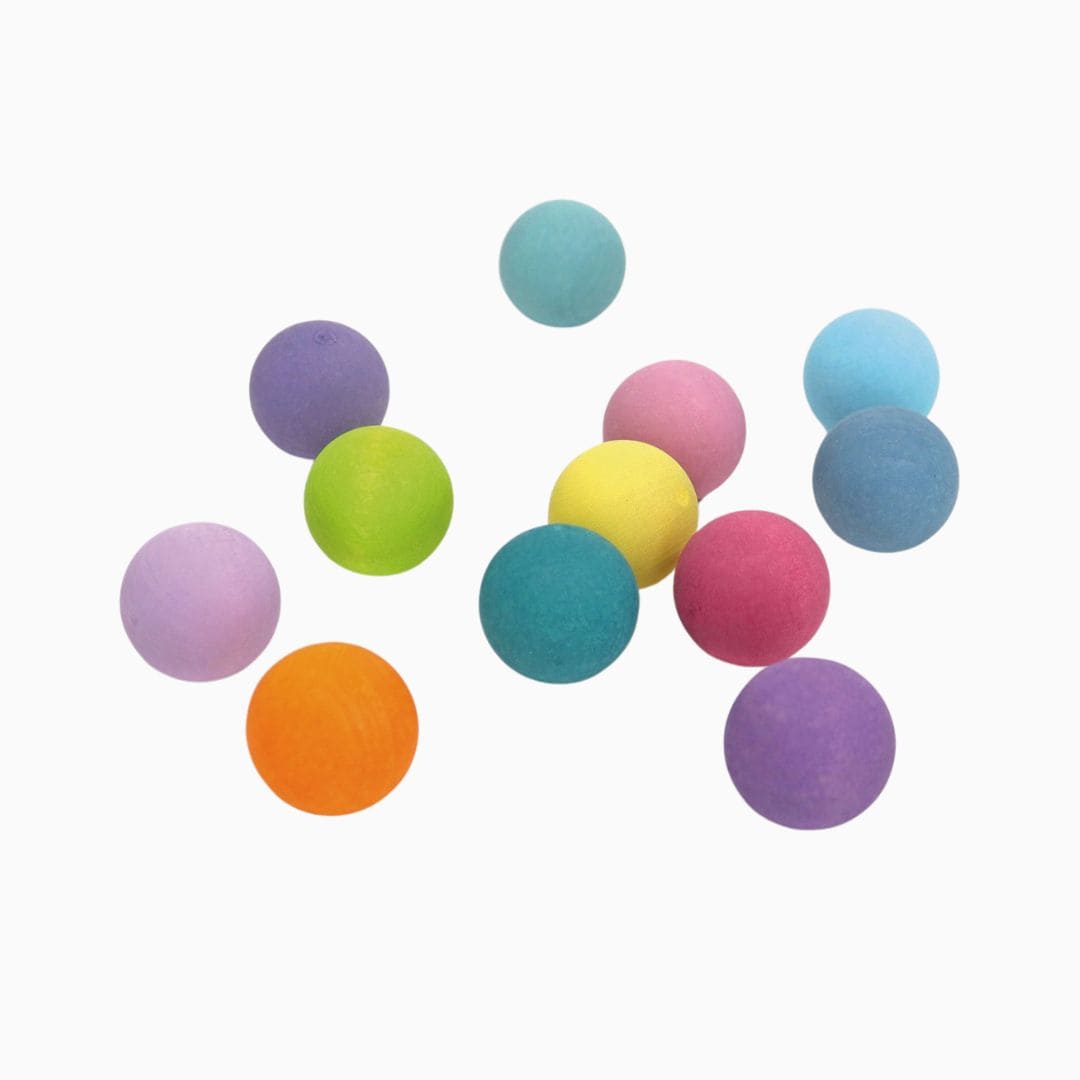 Ben je op zoek naar Grimm’s houten knikkers pastel? De pastelkleurige houten knikkers van Grimm’s vormen een zachte, zintuiglijke speelset vol mogelijkheden. Deze set bevat 12 houten knikkers in zeven subtiele pasteltinten, telkens vijf stuks per kleur. Dit open-einde-speelgoed nodigt uit tot sorteren, rollen, tellen en combineren – of gewoon tot rustig ontdekken, voelen en kijken. De knikkers rollen stil over de vloer of tafel en passen perfect bij houten sorteerkommen, ringen, Friends-poppetjes of knikkerbanen. Dankzij hun formaat zijn de knikkers geschikt vanaf 3 jaar, vooral omwille van de veiligheid. Ze zijnklein genoeg om precies in de hand te passen, maar groot genoeg om stevig te manipuleren zonder frustratie. Productspecificaties Grimm’s knikkers pastel * Merk: GRIMM’S * Afmeting: 3,5 x 3,5 cm * Leeftijd: vanaf 3 jaar