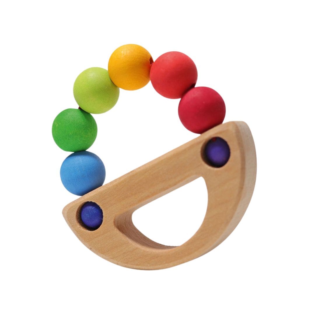 Ben je op zoek naar Grimm’s rammelaar zeilboot regenboog? Deze houten rammelaar van Grimm’s is licht en makkelijk vast te pakken voor je baby. Je baby kan de rammelaar grijpen, eraan sabbelen, bijten op de kralen en schudden. Zo stimuleert dit babyspeelgoed de fijne motoriek en hand-oogcoördinatie. Productspecificaties Grimm’s babyspeelgoed * Merk: GRIMM’S * Afmeting: 9 x 9 x 2 cm * Leeftijd: 0+ maanden