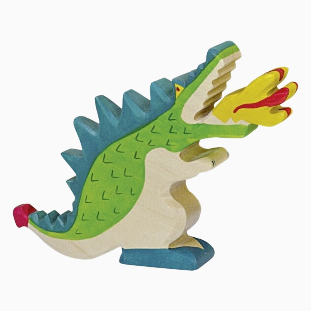 Ben je op zoek naar Holztiger-vuurspuwende groene draak? Houten groene draak van Holztiger. De draak is makkelijk vast te pakken en prikkelt de fantasie van je kind. De houten dieren van Holztiger stimuleren small world play. In combinatie met houten blokken en speelzijde kunnen kinderen op een speelse manier hun eigen wereld creëren. Een wereld vol wonderen waarin ze hun eigen verbeelding en fantasie tot leven kunnen brengen. Het leuke van houten speelgoed is dat je het zo vaak kan uitbreiden als je wilt. Specificaties houten vuurspuwende draak – groen* Merk: Holztiger * Materiaal: massief esdoornhout, verf op waterbasis * Afmeting: 19 x 2,8 x 13 cm * Leeftijd: 36+ maanden