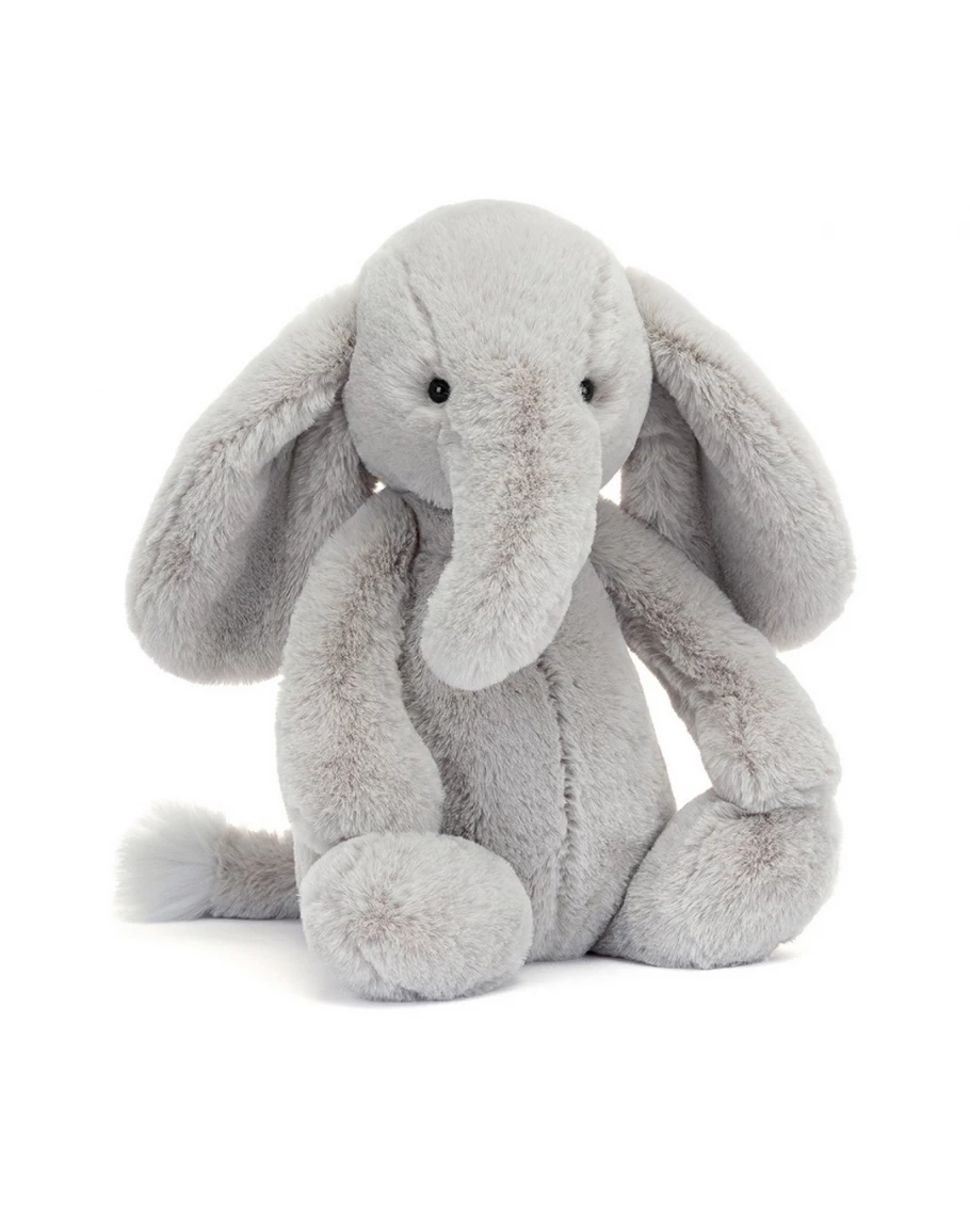 Ben je op zoek naar Jellycat Bashful Luxe Elephant Thuddeus Original? Bashful Luxe Elephant Thuddeus heeft een neus voor avontuur. Met zijn weelderig zachte grijze vacht en pluizig staartpuntje gebruikt Thuddeus zijn lange, gebogen slurf om nieuwe vriendjes op te snuffelen