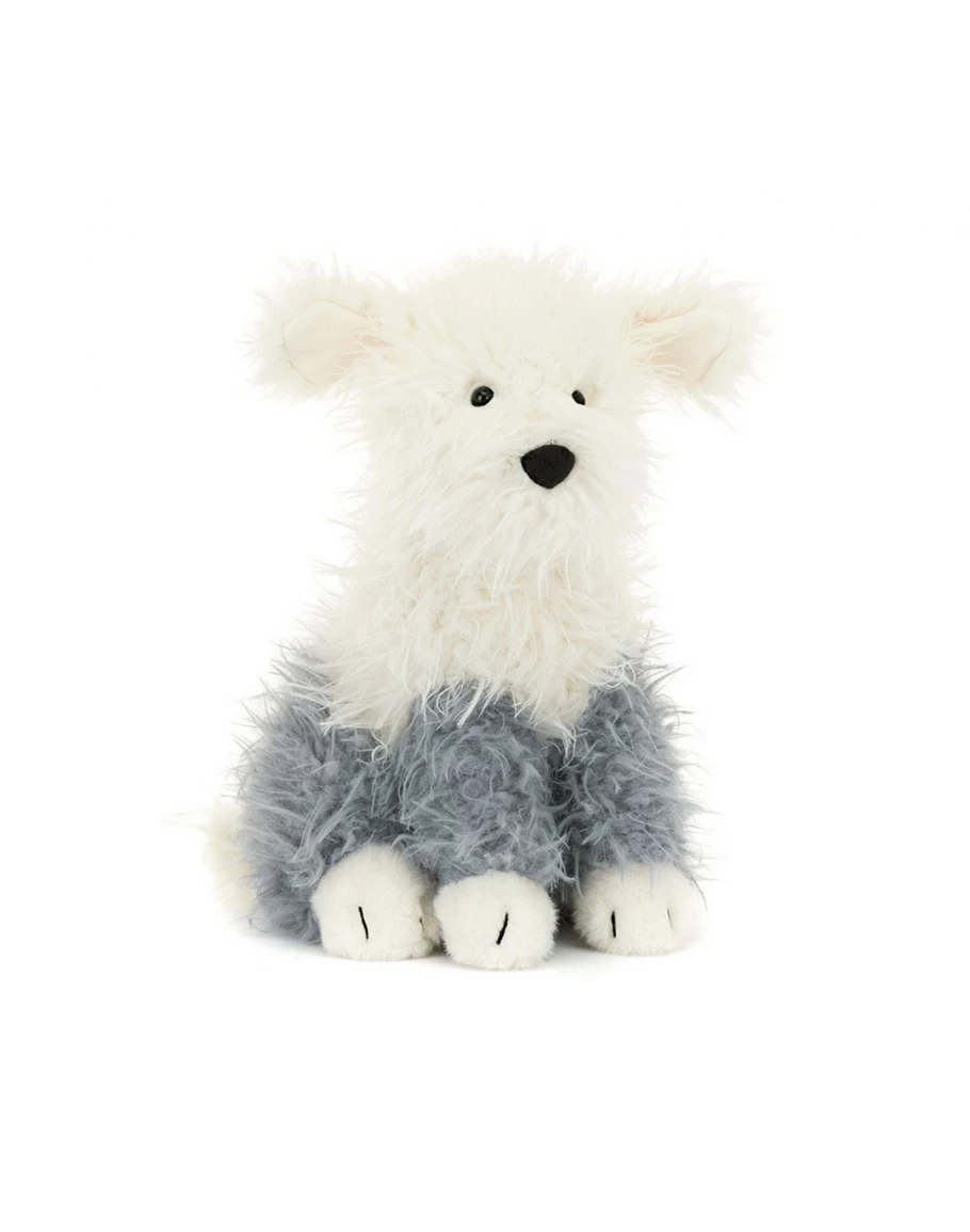 Ben je op zoek naar Jellycat Ewert Sheepdog? Met zijn lange, getextureerde crème- en grijze vacht, heldere ogen en lange staart, is Ewert voorzien van gestikte pootdetails en een grote, boopbare zwarte suèdine neus.