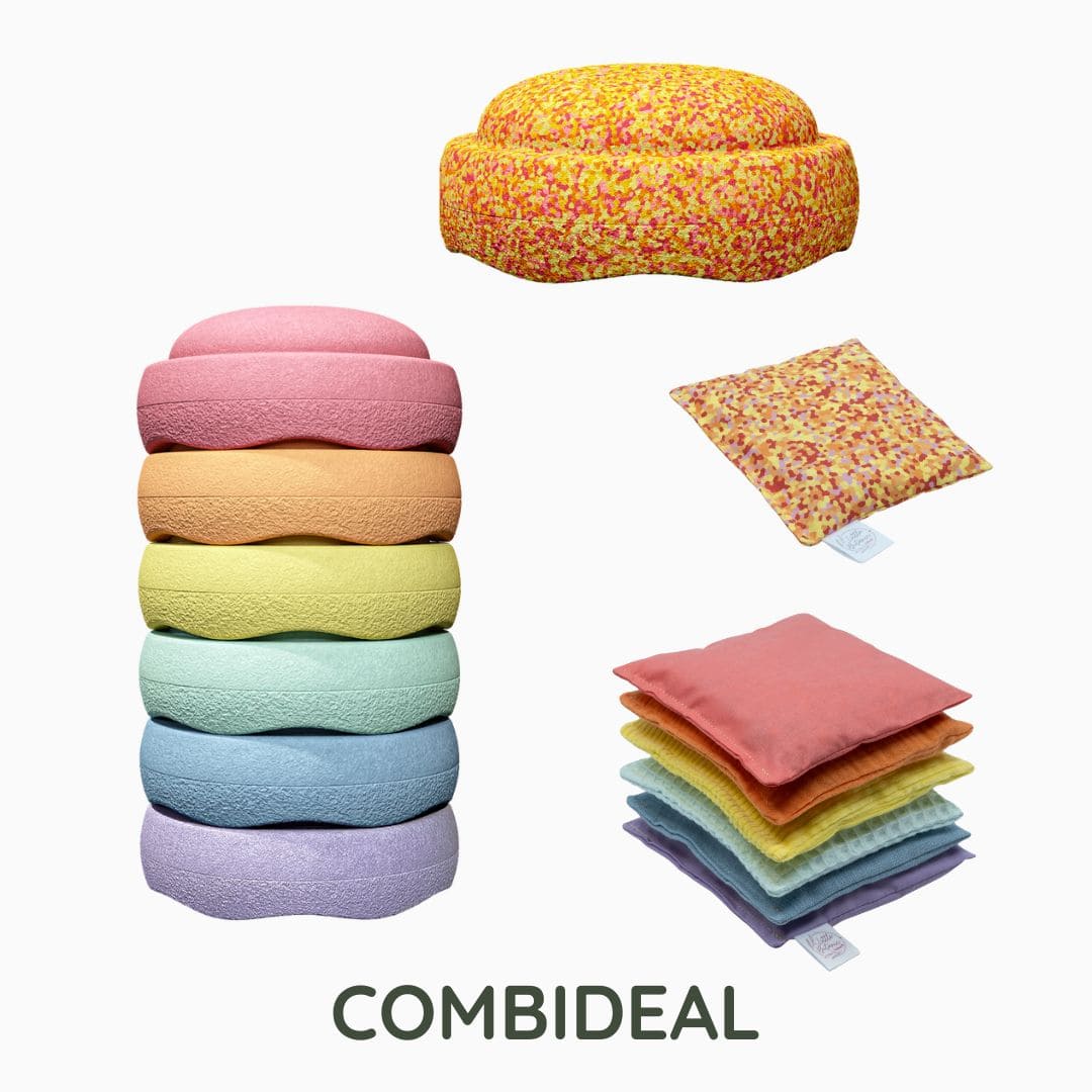 Ben je op zoek naar Stapelstein Pastel voordeelbundel-super warm? Stapelstein stenen en pittenzakjes zijn een absolute speelgoed hit! De sensorische pittenzakjes hebben precies dezelfde kleuren als de Stapelstein-stenen. Dit speelgoed is namelijk onwijs leuk om te combineren en stimuleert je kind om veel te bewegen. Stilzitten is voor de meeste kinderen namelijk een grote uitdaging. Maar met Stapelstein en de pittenzakjes hoeft dat niet. Binnenshuis, in de tuin, naar het strand of in de zandbak– deze speelset neem je gemakkelijk overal mee naartoe. En je kunt er oneindig veel spellen mee bedenken, die ook nog goed zijn voor de ontwikkeling van je kind. Benieuwd naar meer spelopties? Lees dan ons blog’Wat kun je met Stapelstein? 11 leuke spelideeën’en ons blog 15 leuke spelideeën met sensorische pittenzakjes. Product specificaties Stapelstein pastel bundel * Merken: Stapelstein&Little Botanic Label * Inhoud: 7 Stapelstein-stenen en 7 pittenzakjes