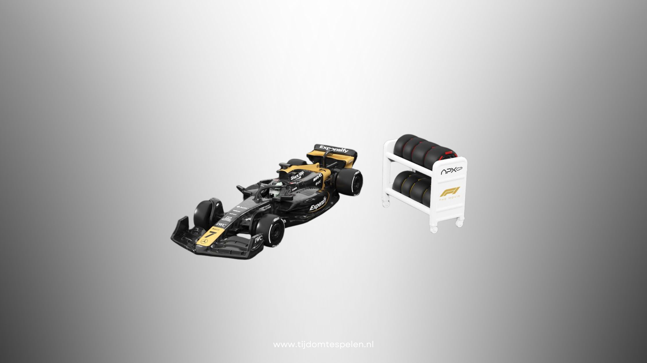 Om deze film te lanceren, komt Hot Wheels met een geweldige die-cast, geïnspireerd op het fictieve Apex Grand Prix (APXGP) team, bestuurd door het personage Sonny Hayes (gespeeld door Brad Pitt in de film). Een perfecte schaalversie, compleet met gouden en zwarte lak én drie sets verwisselbare Pirelli-banden. Zie de foto’s maar eens. Hoe cool?