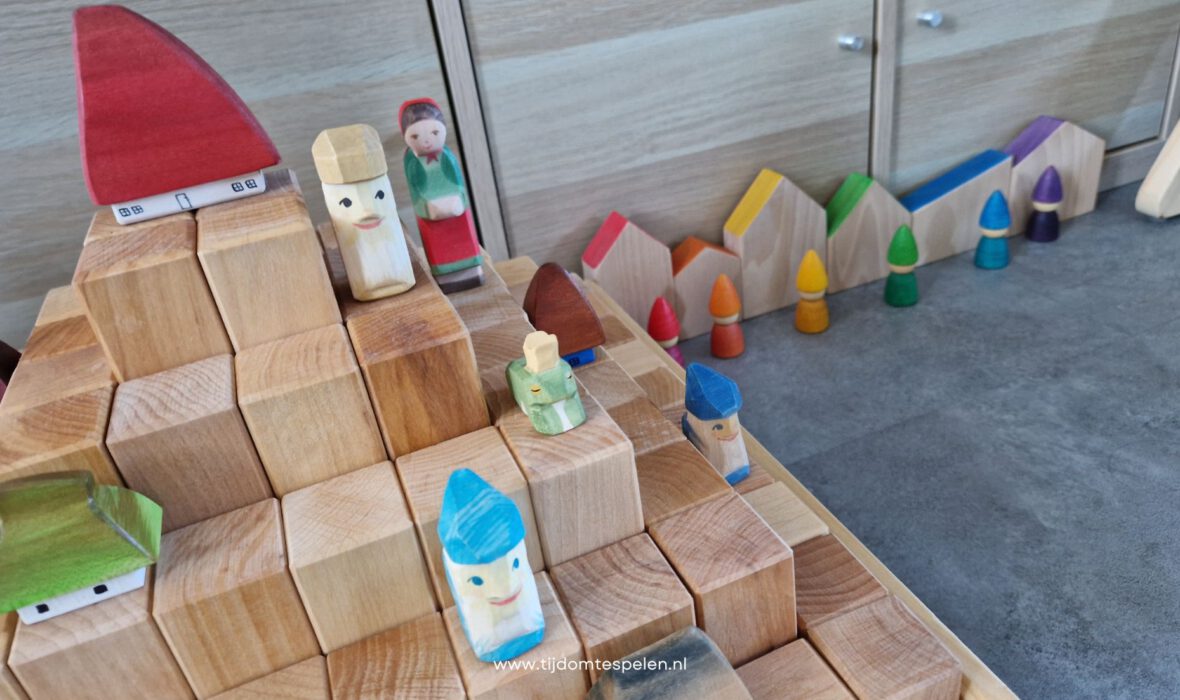 Een leuke tip: gebruik een speelbak of houten plateau als speelbasis en voeg losse onderdelen toe die passen bij het seizoen. In de herfst kun je denken aan bladeren, houten dieren en oranje peg dolls; in de lente aan bloemen, vlinders en bijen.