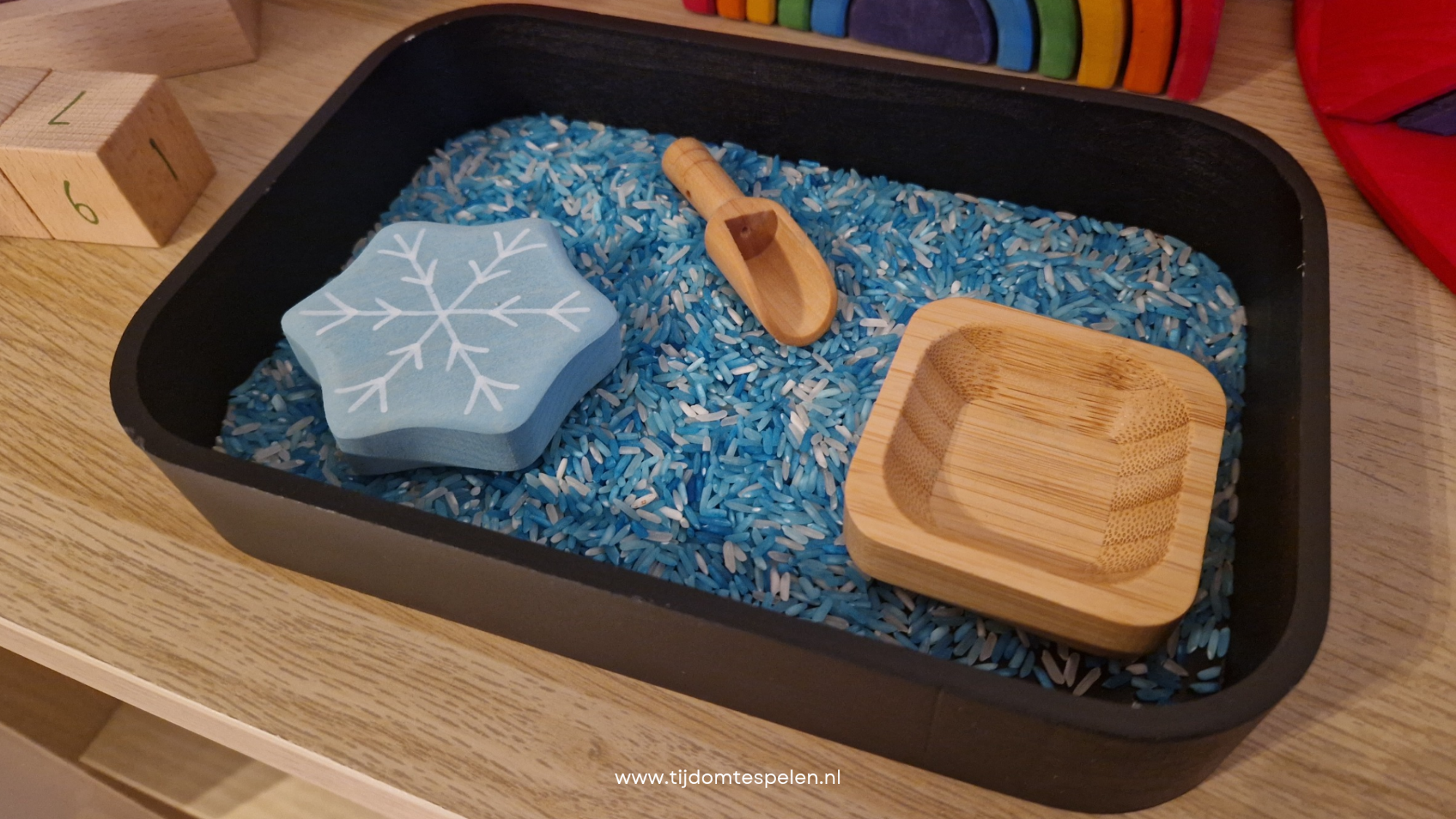 Speelrijst, wat is dat? Een terechte vraag. Speelrijst wordt gemaakt van ongekookte rijst. De rijst wordt vervolgens gekleurd en soms ook geparfumeerd. Daarnaast wordt het ook regelmatig gemixt met andere (natuurlijke) items, zoals lavendel.